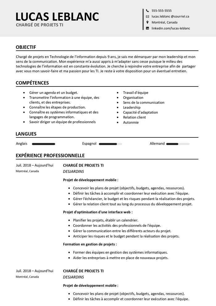 Un CV canadien est un document clair, structuré, sans fioriture, qui résume vos :
