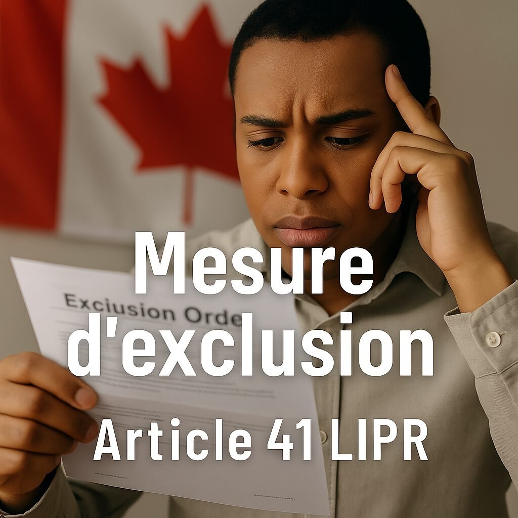 Une mesure d’exclusion est une décision administrative prise par Immigration, Réfugiés et Citoyenneté Canada (IRCC) ou l’Agence des services frontaliers du Canada (ASFC) pour expulser temporairement un étranger du territoire.