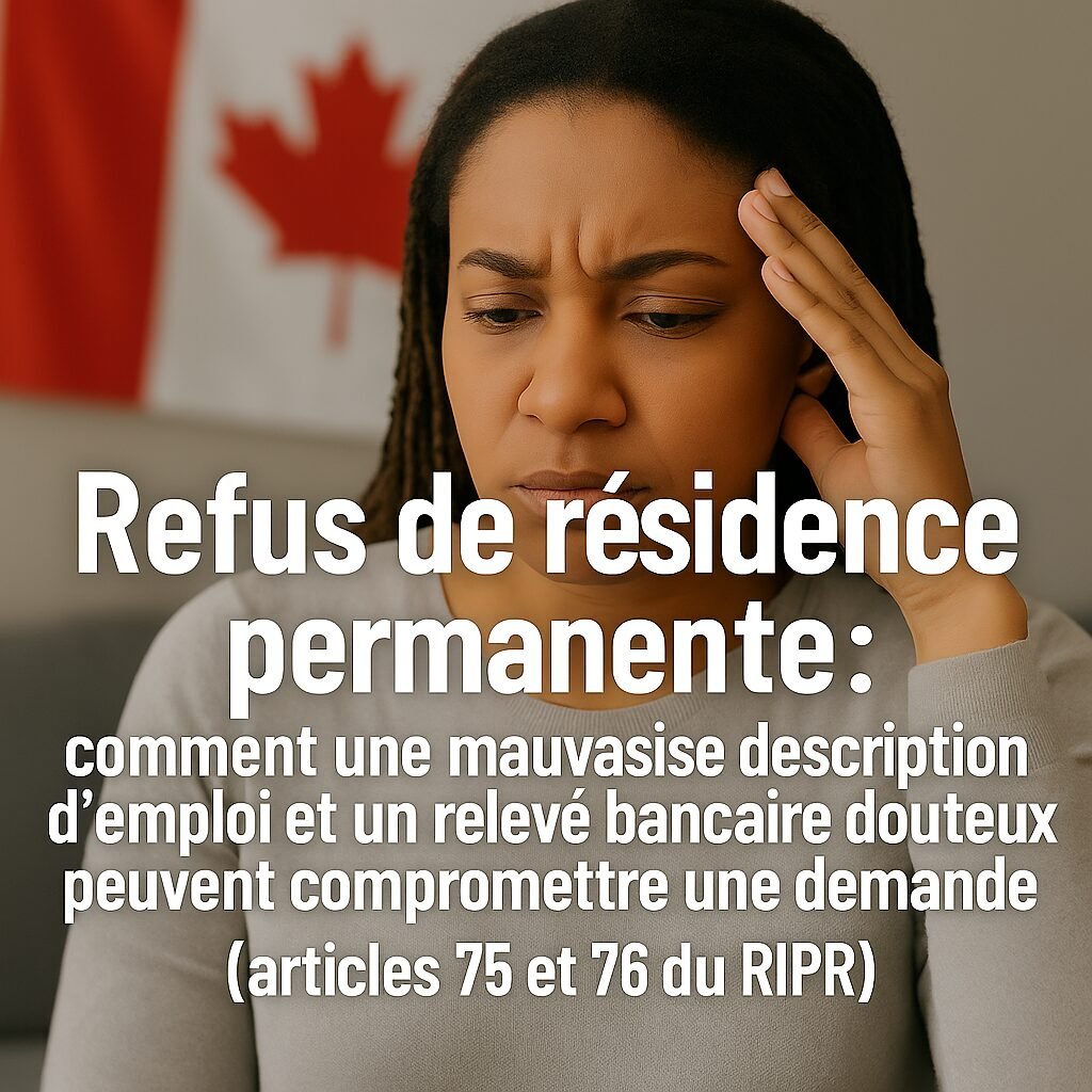 Un refus fondé sur l’article 75 ou 76 n’entraîne pas d’interdiction de territoire, mais exige souvent une nouvelle demande complète, avec tous les frais à recommencer.